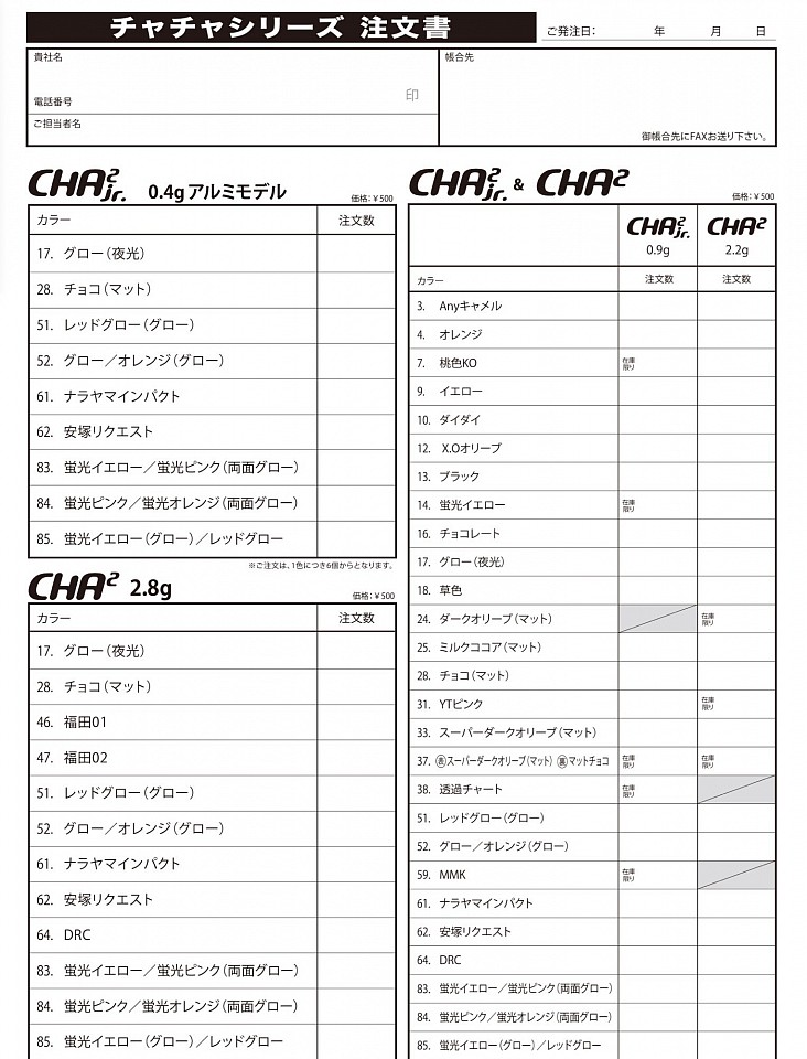 Cha 2.2 - 2.8g in 12/24 colori