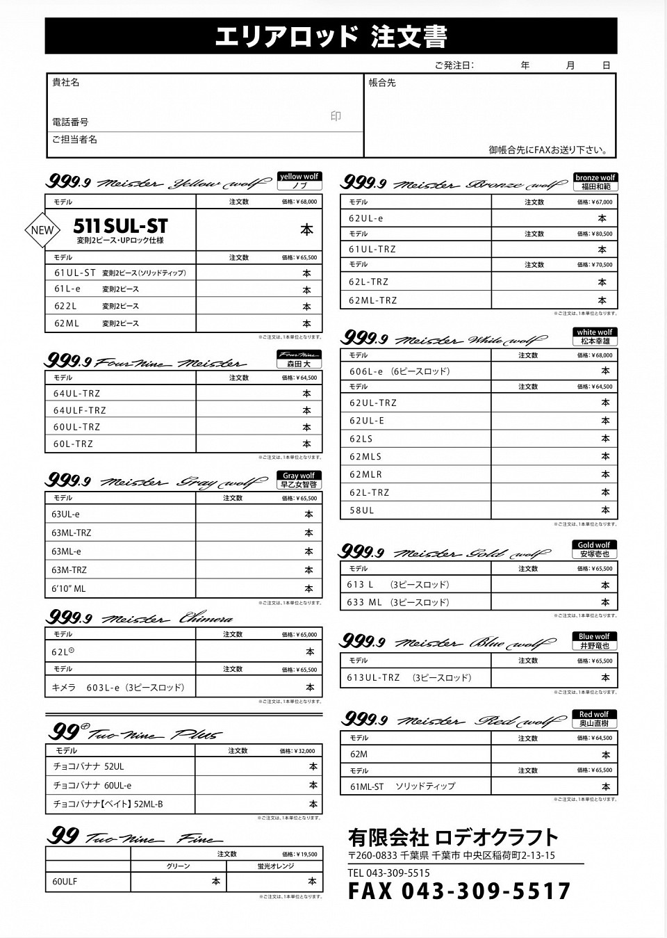 NEW Rodio Craft 999.9 Meister Yellow Wolf 62UL-e