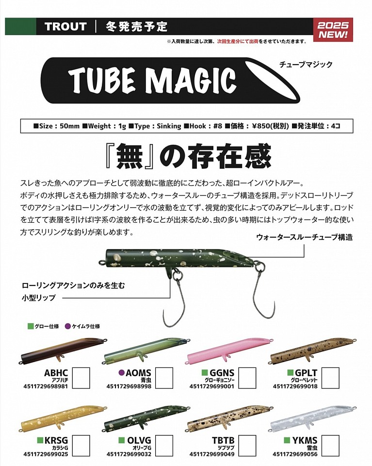 Tube Magic F - 50mm - 1g . In 8 colori ( Sinking )