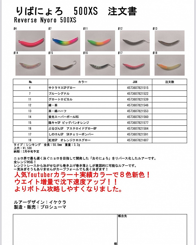 Reverse Essa Nyoro 500S - 50mm - 3 gr in 11 colori.
