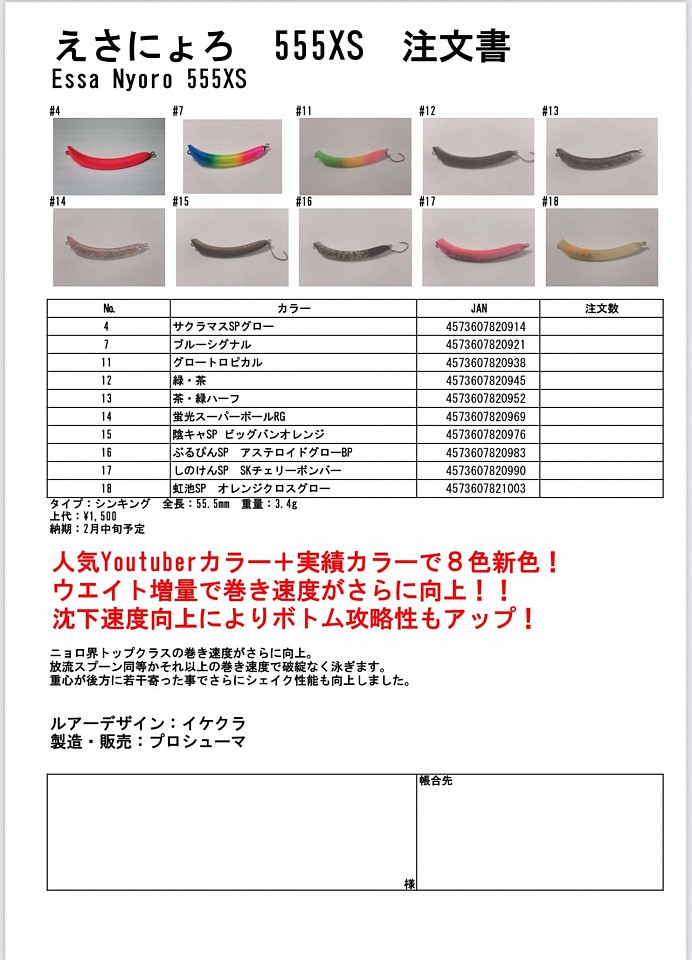 Essa Nyoro 555S - 55,5mm - 3 gr in 11 colori.